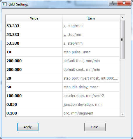 Así que escriba $0 = 53.333 y $1 = 53.333 en el terminal para configurar el eje. Usted tendrá que hacer un soft-reset para que los cambios surtan efecto ($X).