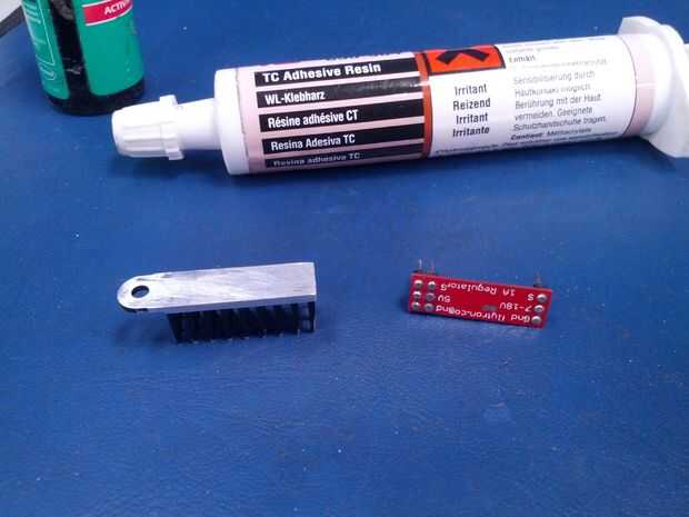 7 | Pegue los LDOs a los disipadores de calor con adhesivo conductor térmico.