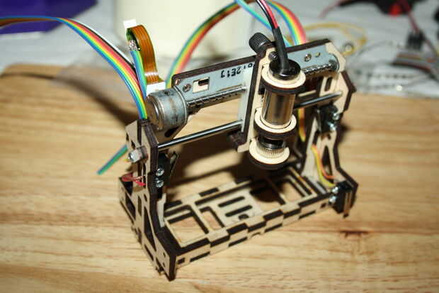 A través de la construcción a medio camino me topé con un problema; El EasyDrivers fueron demasiado al Arduino a continuación. Tuve que mover el PCB fomente hacia fuera para hacer espacio. En vez de ponerlo todo de nuevo juntos otra vez y en previsión de futuras complicaciones que dejé todos los componentes electrónicos de la placa superior libre de sus monturas.