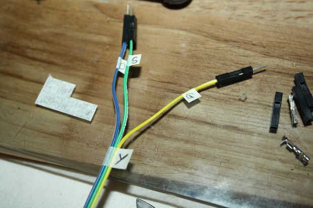 He utilizado cable de cinta y conectores de DuPont para el cableado. Me aseguré de etiquetar todos los cables con pequeñas tiras de cinta adhesiva para que no olvide donde van todos los cables.