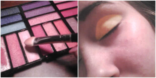 Utilizando un aplicador de sombra, o cubierta del cepillo todo el párpado con la más ligera sombra de rosa. Ya que estas son un poco no te enumero un tono por debajo de la marca creo que es cerca de este color.