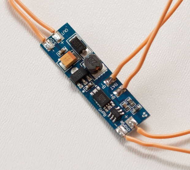 - Entrada de CC (también marcado como "carga", "Puerto de carga", "P + y P-", "3.7V+ y 3.7V-") donde tienes que conectar tu solar cell(s), este acepta generalmente de 3.7 a 6 v o más.