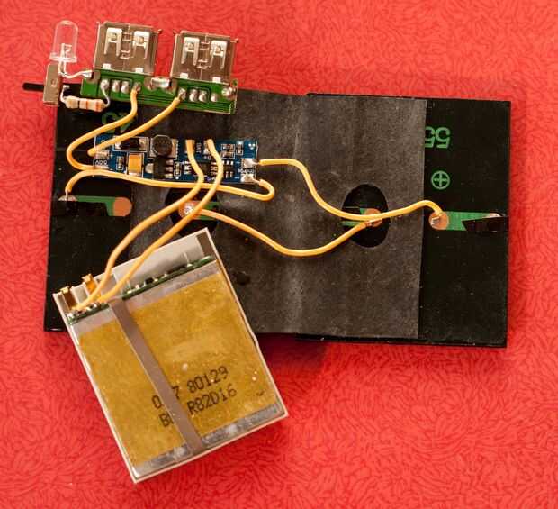 Mi propósito aquí es mantener el tamaño para mi dispositivo como más pequeño como sea posible. Para ello necesitamos planificar la disposición exacta de los componentes. Por lo tanto, colóquelos sobre las dos células solares, corte los cables a la longitud exacta y pegamento como primero el rectángulo de goma de un tubo de la bicicleta.