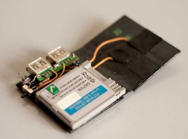 Quería utilizar velcro para mantener el mini libro cerrado pero he descubierto que es un poco demasiado espeso. Entonces opté por una banda de goma simple, pero usted probablemente encontrará una solución mejor. Deberá abrir la "libreta" para exponer ambas cubiertas a la luz solar y cargar la batería.