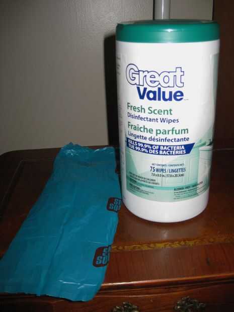un envase vacío grande de lysol o noname trapos de cocina, he utilizado minas de walmart el gran valor de trapos,