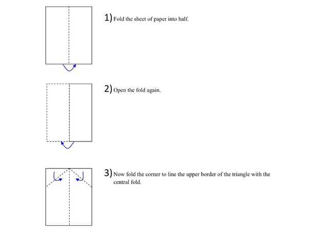 3) ahora dobla la esquina a la línea de la frontera superior del triángulo con el pliegue central.