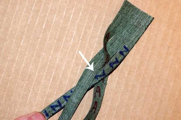 Doblar la correa en blanco (la correa muy izquierda) sobre la correa Z. Ahora ha invertido el orden de las bandas de blanco-A-z a Z-blanco-A.