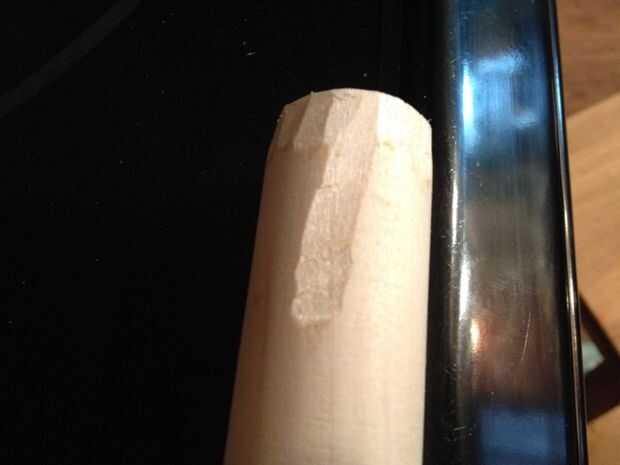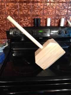 Comencé tomando un cincel para estrechar un poco el extremo de la varilla de pasador. Y una pequeña sección de un borde afilado un poco más largo. Una vez que termine esto, he cubierto el borde de la varilla de pasador en pegamento gorila y había colocado en el agujero. Luego, utilizando un mazo de goma, condujo lo en la cabeza del martillo. Tenga cuidado de hacer esto, porque después de algún tiempo, empecé a dividir la madera. Así que tenga cuidado.