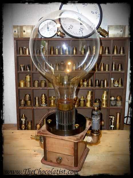 Para la vivienda he usado un molinillo de café vintage de un buen amigo. Él me permitió desarmar para esta creación única de Steampunk.