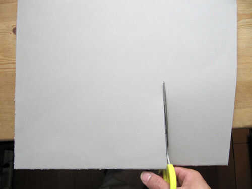 El primero y parte superior que es la mayor parte. Utilice tijeras para cortar el papel en a un trapezoide como forma como sigue: