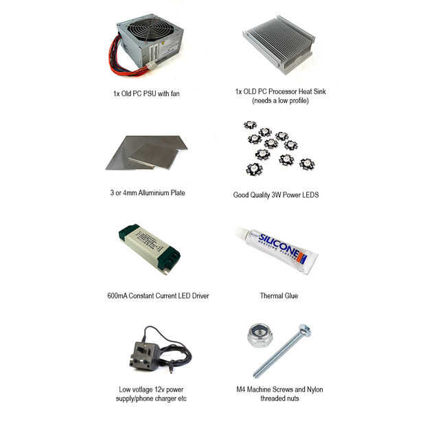 1 x viejo PSU desde un PC con un ventilador de 120 mm grande (Mientras que la PSU no es necesario trabajar el ventilador tiene que trabajar).