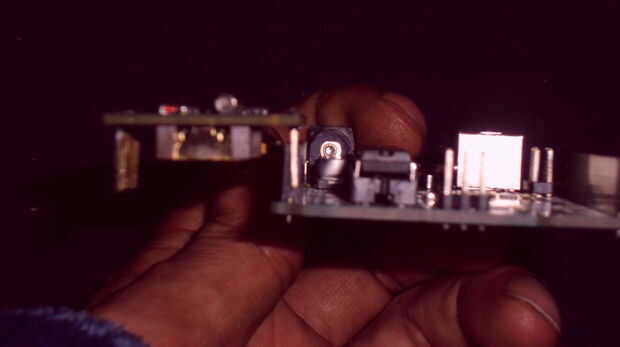 Ahora en mi módulo, esto deja la clavija DS colgando sobre el borde del conector - que es perfecto ya que no es utilizado.