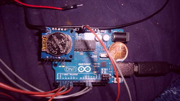Anexo: he descubrí que las comunicaciones I2C no se puede cambiar de pines A4 y A5, por lo que no hicieron cambios de software. La única diferencia ahora es que la RTC I2C se sienta sobre el Arduino, en lugar de colgar sobre el borde.