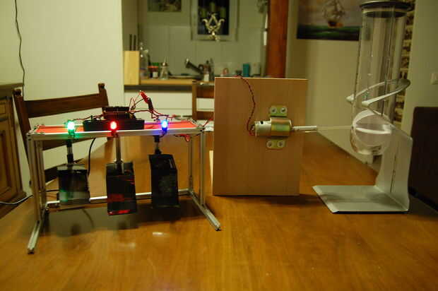 El esquema más grande para la idea de los juguetes del perro robot es un sistema de entrega de tratamiento centralizado que se comunica inalámbricamente con varios juguetes de diseño diferente, así que este módulo de 'Touch' con las palancas sólo podría ser un juguete único en un grupo. Antes que entrar en los detalles, vea este video de mi perro Henry, jugando con el prototipo terminado, para que pueda obtener una idea de cómo funciona.