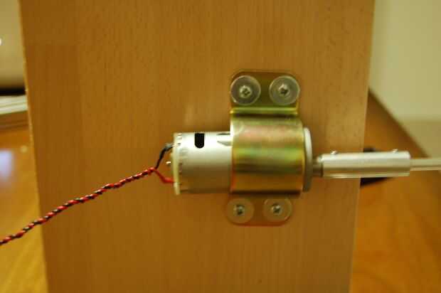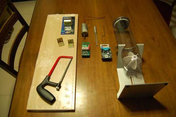 Fui a la ferretería local y comprar varias piezas. Las imágenes incluidas en este paso ilustran bastante bien lo que hice. Primero compré un estante de madera barato y una sierra y unos soportes en forma de L para hacer un soporte para conectar el motor. Entonces me encontré con una "abrazadera de mástil,' una pieza para fijar el motor a la Junta. Usted tendrá hasta encontrar uno que coincida con el tamaño del motor que compra. (Yo usé un motor de caja de engranajes de alto torque por razones discutidas anteriormente). Una vez que usted hace el acoplamiento y el eje o encontrar una solución alternativa, puede atornillar todo juntos.