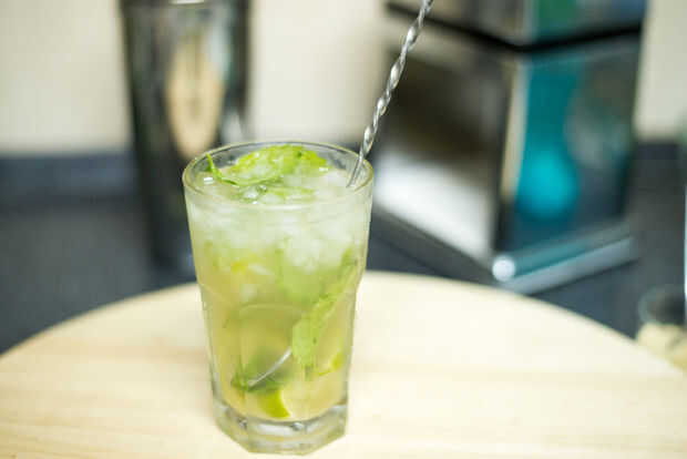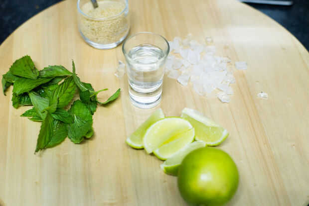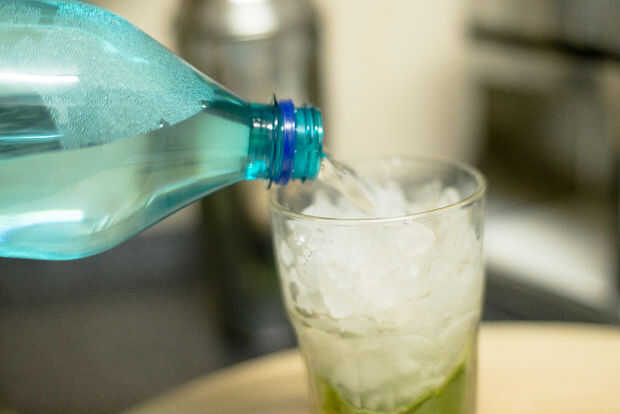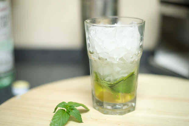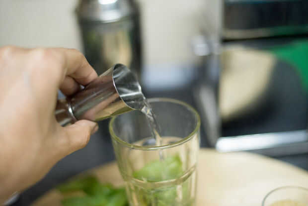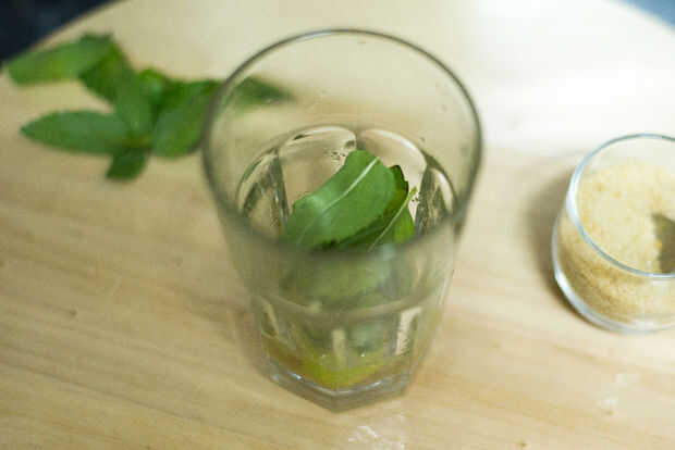 En este punto usted podría machacar ligeramente les, pero prefiero no. El clásico error al hacer un Mojito es sobre machacar la menta. Machacando en la menta liberará tanto sabor, que no degustar alguno de los otros ingredientes. Un Mojito perfecto debe incluir un equilibrio de sabores.