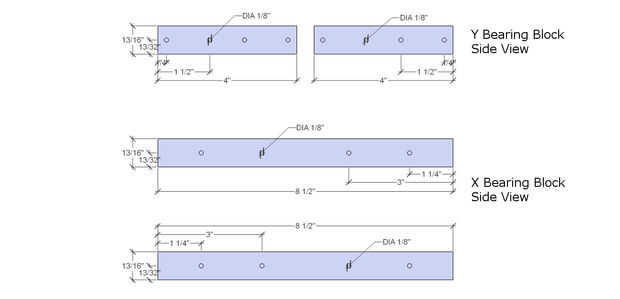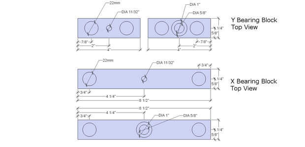 Cortar 2 piezas de 4 "x 1 ¼" x 13/16" espesor para el eje y