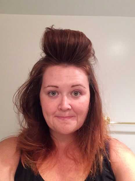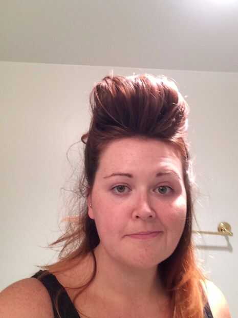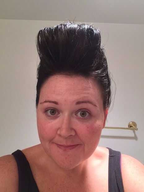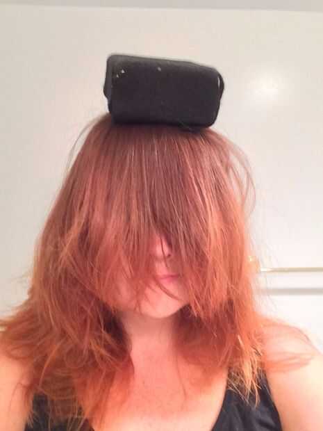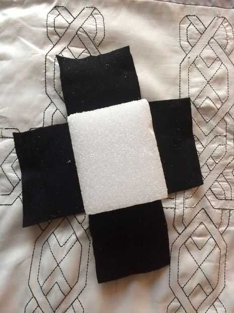 Mi pelo es básicamente plana. Como realmente plana. Por lo tanto, necesitaba una pequeña ayuda con volumen. Entrar-bloque de espuma de poliestireno. YEP. He cubierto la espuma de poliestireno en fieltro negro (que sólo se pega a él sin el pegamento) y utiliza las horquillas para conseguir que permanezca en mi cabeza.