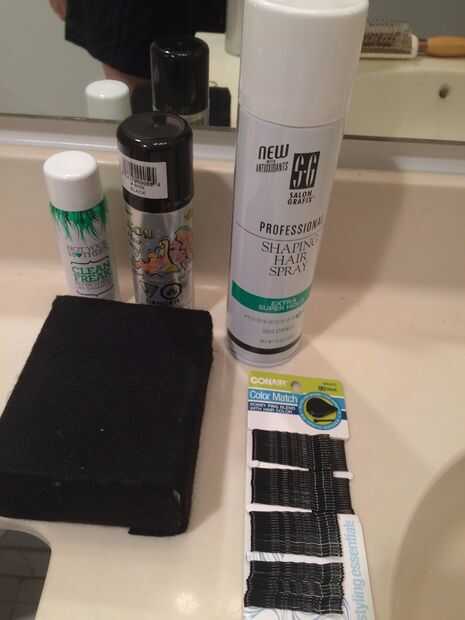 Se utilizan productos como champú seco, el bloque de espuma de poliestireno, horquillas, laca y spray de pelo negro.
