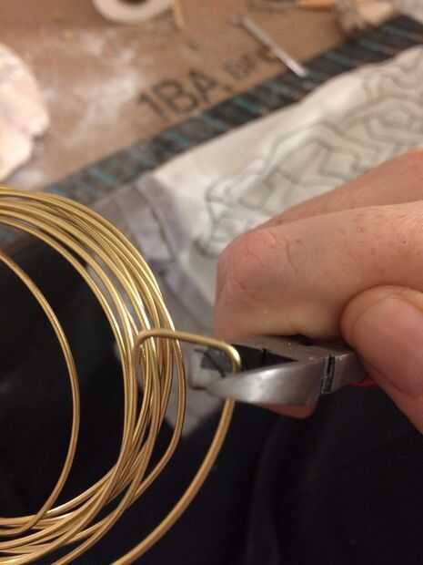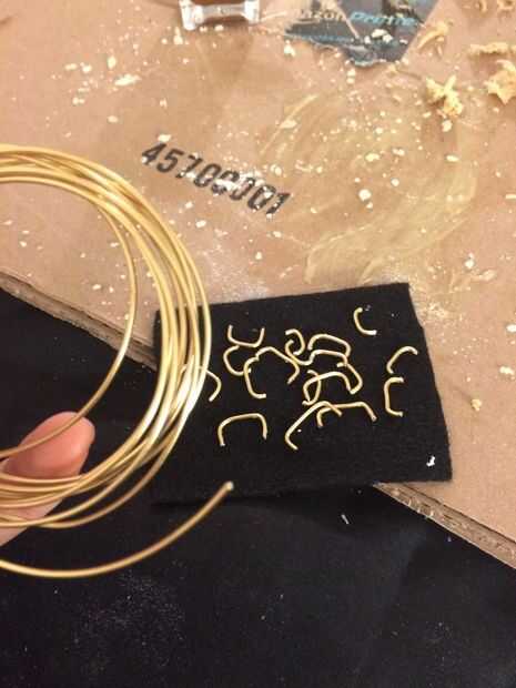 OK, ahora los pernos. He pintado algún viejo oro de tornillos y envuelto en el alambre de bronce. Curva el alambre de bronce por lo que sólo sería colgar de mi pelo super-hairsprayed. HECHO!