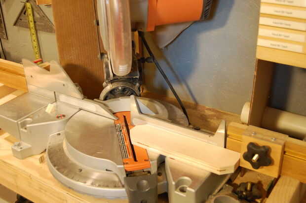 Los rieles de apoyo se arrancó al ancho de la Sierra de mesa y corte a la longitud de la Sierra de inglete. Cualquier esquinas expuestas son quemadas a 45 grados para eliminar la nitidez.