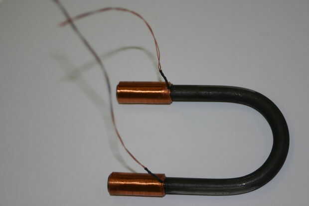 Se necesita barra de acero de diámetro de 10mm para doblar en una herradura imán y 0,5 mm de diámetro esmaltado alambre para enrollar las bobinas.
