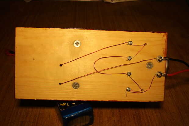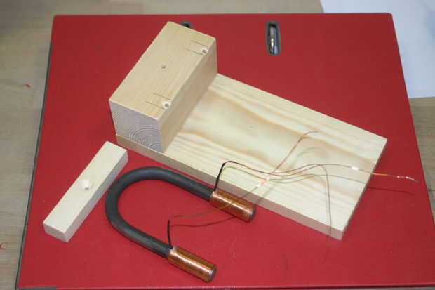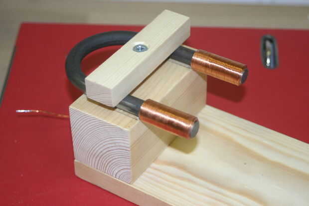 Por último necesita dar la vuelta el motor y acabado Conecte el cableado. lo primero que quiero hacer es conectar una batería a las bobinas y arreglar los extremos para tener un norte y Polo Sur cuando se conecta en serie a continuación añadir el enlace entre las dos bobinas. Uno de los otros extremos de la bobina tiene que ir a la batería y el otro extremo debe ir en el eje terminal. El alambre del cepillo entonces pasa al otro lado de la batería para completar el circuito. He incluido una foto para que veáis cómo se logra esto.