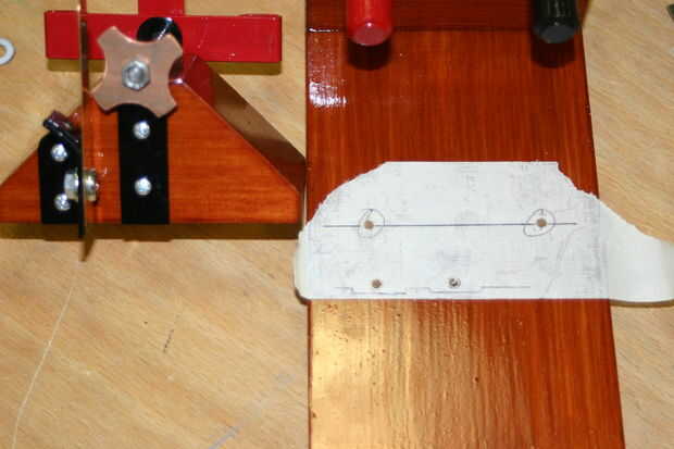 Retire el conjunto giratorio y marcar dos orificios como se explicó anteriormente, entonces también marca los orificios de fijación principal que debe ser de 20mm de ambos lados y unos 20mm delantera la parte delantera del bloque. Taladro mm 3,3 todos.