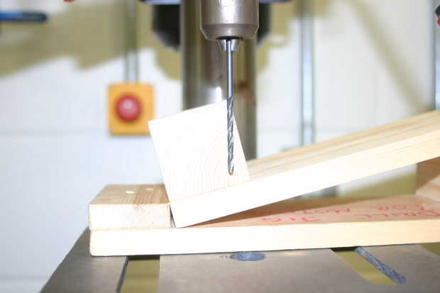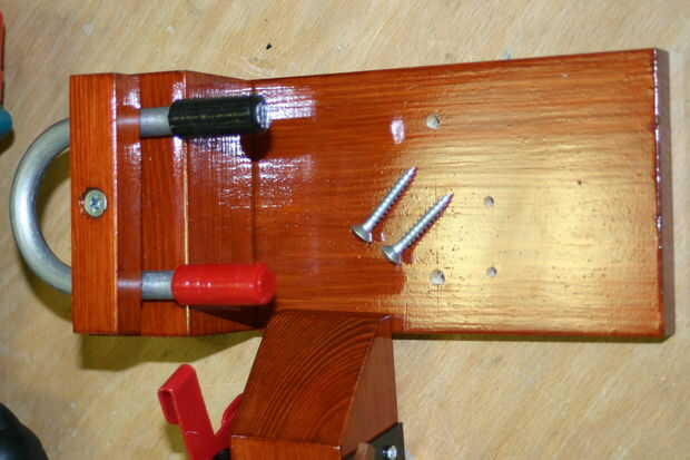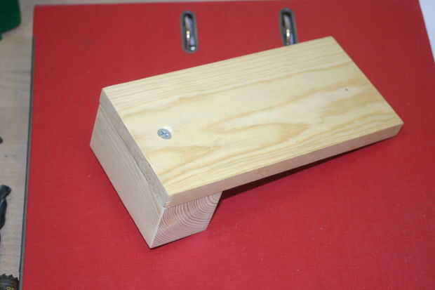 Vuelva a colocar el bloque con el poco de espaciador de madera y sujete con una corona de "G" como se muestra, luego con un piloto de taladro de batería los agujeros de debajo.