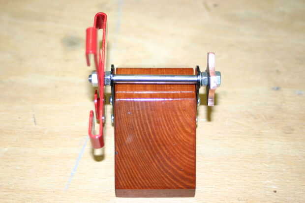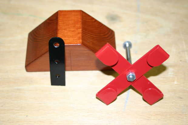 La rotación comienza a montar pero fijar los dos bits del rotor en el eje usando las tuercas M5 cada lado, obviamente los dos bits debe ser perfectamente cuadrados entre sí y la plaza en el eje. Tuve que probar diferentes tuercas M5 como algunos no son muy cuadrados. Luego marcar la madera a medio camino a lo largo y coloque el eje de apoyo y marcar lo orificios piloto 2mm y luego fijar el soporte en su lugar.