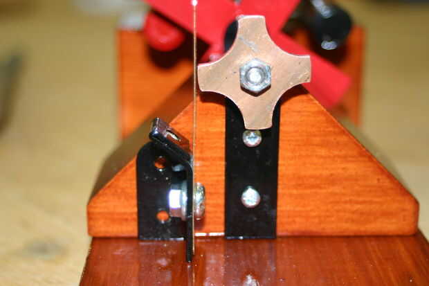 Se puede ver en esta foto el apoyo del eje ha sido atornillado en su lugar (con un cable detrás de él) y el conjunto de escobillas siguiente debe ser instalado el alambre estañado detrás del tornillo de sujeción.