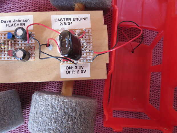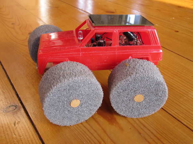 Así es posible utilizar con eficacia el motor de la semana Santa con motores que no ejecute bien cerca de la salida básica de aproximadamente 1.3 o 1.4V. El motor solar en el juguete SUV en las fotos fue hecho para encender a 3.2V y apagar a 2.0V porque en ese rango de voltaje el motor tiene buena potencia.