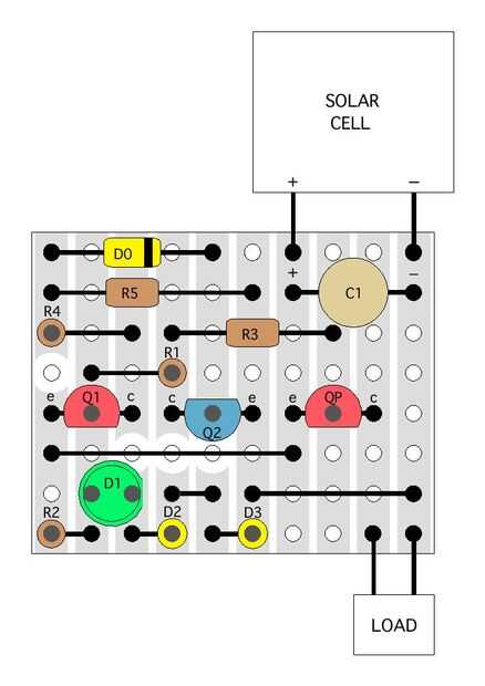 Una característica útil del motor de Pascua es que se puede subir la tensión de torno sin afectar el nivel de inflexión insertando uno o más diodos en serie con la base de Q2. Con un solo 1N914 diodo conectado de la ensambladura de R4 y R5 a la base de Q2, el circuito se apaga cuando el voltaje cae a alrededor de 1,9 o 2.0V. Con dos diodos, el voltaje de desvío mide aproximadamente 2, 5V; con tres diodos, apagado en de 3.1V. En el diseño de la placa perforada, el diodo o diodos cadena puede ser ubicado en lugar del puente que se muestra arriba el resistor R5; la segunda figura muestra un diodo que d0 así instalado. Tenga en cuenta que el extremo del cátodo debe ir a la base de Q2.