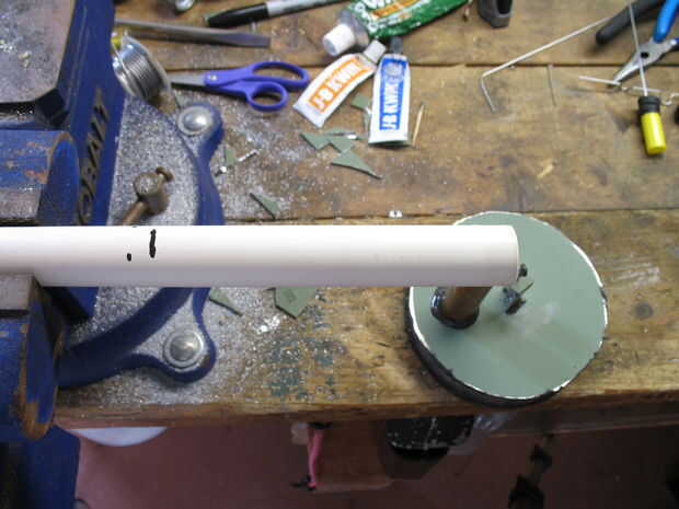 Finalmente epoxy o hotglue un segmento justo detrás de la tubería de cobre. dejar el otro sin pegar por el momento. Hace todo mucho más fácil de ajustar.