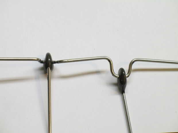 1 - tomar todas las varillas con ganchos y perfore un orificio de 3/32 en cada gota de epoxi que es el gancho. (el agujero debe ser una talla más grande y el cable). Trate de no golpear el gancho cuando taladre...