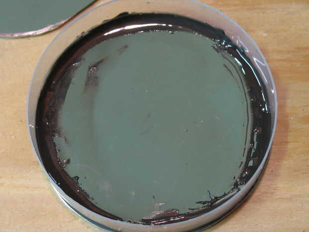1 - no mezclar el epoxi en el cilindro. El aceite parece contaminar la mezcla y guardarla de endurecimiento. la mezcla en papel encerado o abrigo de saran.