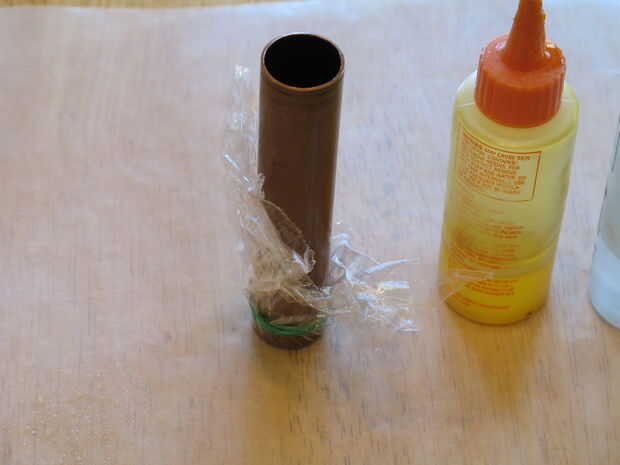 7 - mezcla suficiente para llenar una media pulgada de la tubería más o menos.