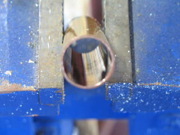 1 - cortar alrededor de una pulgada de tubo de cobre con una sierra para metales. (perdón por las fotos, he utilizado un trozo enorme, quise utilizar una pulgada de tubo)