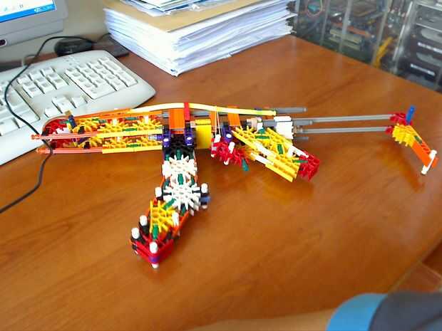 Hi this is my knex crossbow. La ballesta tiene un sistema anti-bloqueo para el disparo rápido. Tiene un compartimiento de 16 balas que resulta bastante rápido en recargar. Una velocidad de aproxamate de disparar balas de todos es de 25 segundos con v