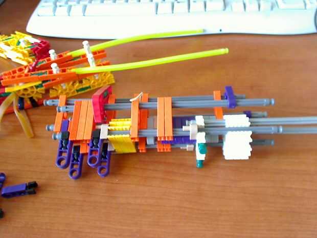 Hi this is my knex crossbow. La ballesta tiene un sistema anti-bloqueo para el disparo rápido. Tiene un compartimiento de 16 balas que resulta bastante rápido en recargar. Una velocidad de aproxamate de disparar balas de todos es de 25 segundos con v