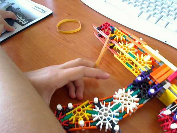 Hi this is my knex crossbow. La ballesta tiene un sistema anti-bloqueo para el disparo rápido. Tiene un compartimiento de 16 balas que resulta bastante rápido en recargar. Una velocidad de aproxamate de disparar balas de todos es de 25 segundos con v