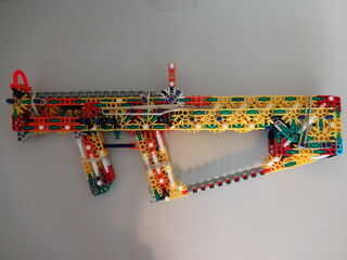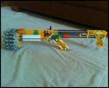 - Catapulta: Una catapulta K'NEX arma utiliza una banda elástica como las mecánicas de lanzamiento Este particular mech es una banda que el usuario ha retirado a la zona de la cámara, y luego cuando se tira del gatillo, la banda lanza hacia adelante, empuja la munición con él.