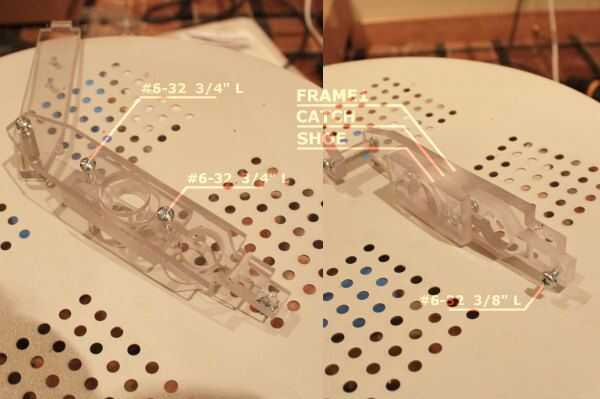 Instale un tornillo #6-32 3/4" longitud en el FRAME2 lado de la lengüeta de la parte inferior de la pieza de captura.