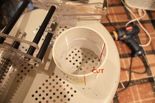 1. Inserte el FOREGRIP pieza en 3" PVC gravedad alimentar acoplador y utilícela como plantilla para marcar dónde cortar una sección del acoplador.