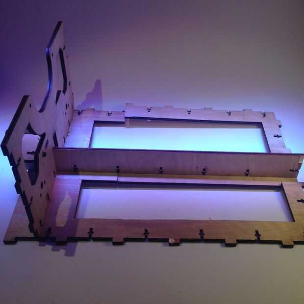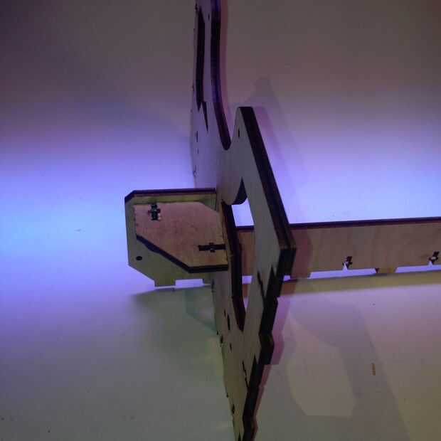 La espina dorsal larga y montaje del motor Y Coloque la máscara mirando hacia atrás acompañado de un estabilizador de panel. el estabilizador es un apretón apretado y tendrá para las partes, para conseguir que se deslice en sus ranuras. Una vez todos junto esta pieza se desliza en los orificios de la placa inferior grande y todos los tornillos pueden ser insertados.