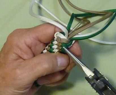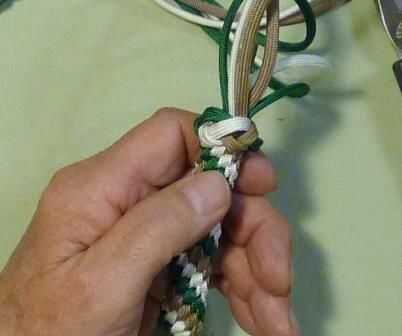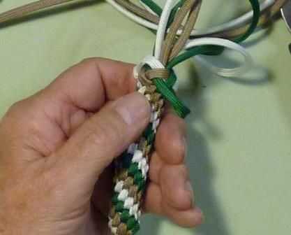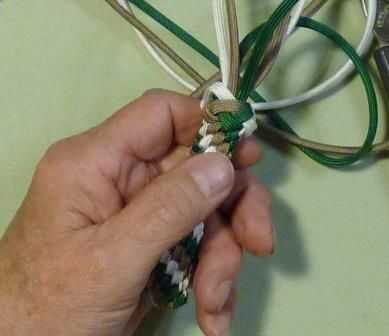 Sobre el último nudo no apriete los cables. Deje un pequeño bucle en la parte superior de la trenza.