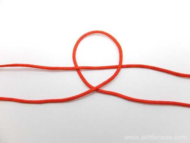 Hacer un bucle hacia la derecha con el por debajo de cuerda roja y alrededor de la médula roja supra.