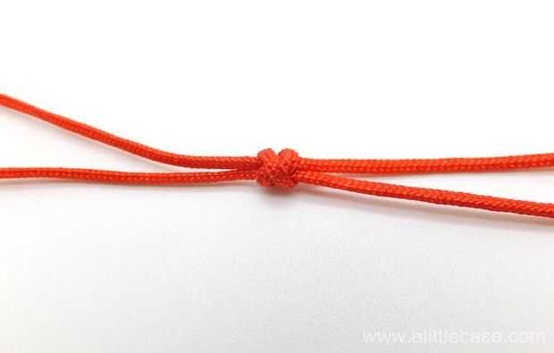 El nudo decorativo básico para hacer la pulsera-nudo de conexión doble (7 / 8 paso)