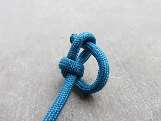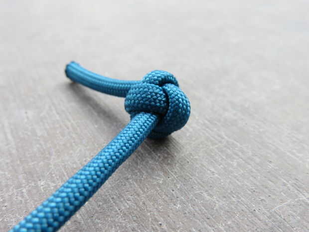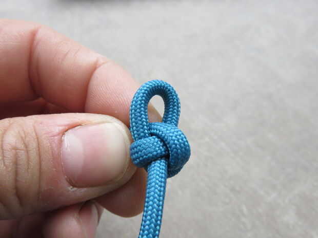 Una vez la espiga marlin enganche derrames obtendrá un nudo de lazo. Desde allí usted puede conseguir fácilmente un nudo de tope. Todo lo que tienes que hacer es el extremo libre a través del ojo y tire firmemente el extremo del pie. Esto le da un nudo trébol estable. Si nos fijamos en la primera foto el extremo del pie se corta muy corto. Puedes ver cómo tres ajusta incluso rodean el cable del centro. Aumenta el diámetro total.