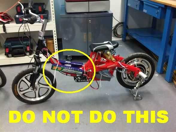 Idealmente, la batería debe estar en un estuche duro que encaja perfectamente pero transmite todas las cargas mecánicas del vehículo alrededor de la batería. Si no insisto en esta suficiente, entonces sólo puedo decir que las personas han hecho todas youtube carreras basadas en la configuración de las baterías de litio en el fuego . Reloj ir bastante de ellos - usted va tener más cuidado.